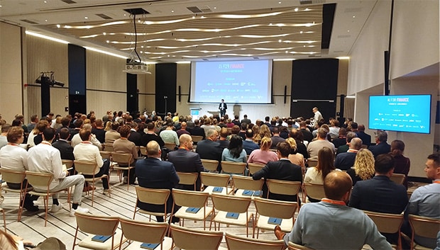 Grégory Lorito, O2C Industry Expert, Sidetrade, showcasing Aimie’s capabilities and Sidetrade’s value proposition at the dedicated AI for Finance workshop in Brussels.